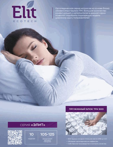 Основная продукция: ортопедические матрасы, кровати и товары для сна. Каталог продукции матрасов насчитывает 10 серий и более 60 моделей. Предприятие основанно в 2005 г.