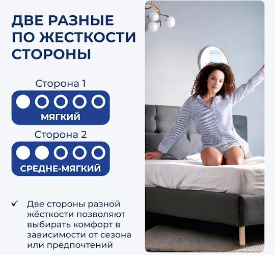 • Высота (Толщина): Беспружинные модели — от 16–18 см, матрасы с независимым блоком S-500/S-1000 — от 20–25 см.