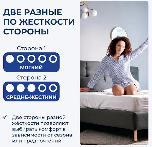 | Жесткость у матраса | Разносторонняя жесткость |