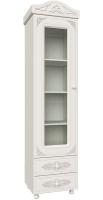 Шкаф-пенал со стеклом Ассоль АС-1 исполненный в стиле Прованс прекрасно подойдет для вашей квартиры или загородного дома. Выполненный из качественных материалов этот шкаф порадует вас своей практичностью и долговечностью. Особый шарм шкафу придает уникальный объемный фасад с 3D накладками. Наполнение шкафа три полки и два выдвижных ящика. Необходимо по часовой стрелке развернуть фасад изделия на 180 градусов для зеркальной сборки. Обратите внимание на технологические отверстия под внешнюю фурнитуру. Высота боковых стенок каждого ящика 130 мм, ширина ящика 408 мм, глубина 350 мм. Высота опоры 65 мм.  Модуль может быть собран "левым" или "правым". Фурнитура: петли с доводчиками, телескопические направляющие полного выдвижения без доводчиков, опоры деревянные.